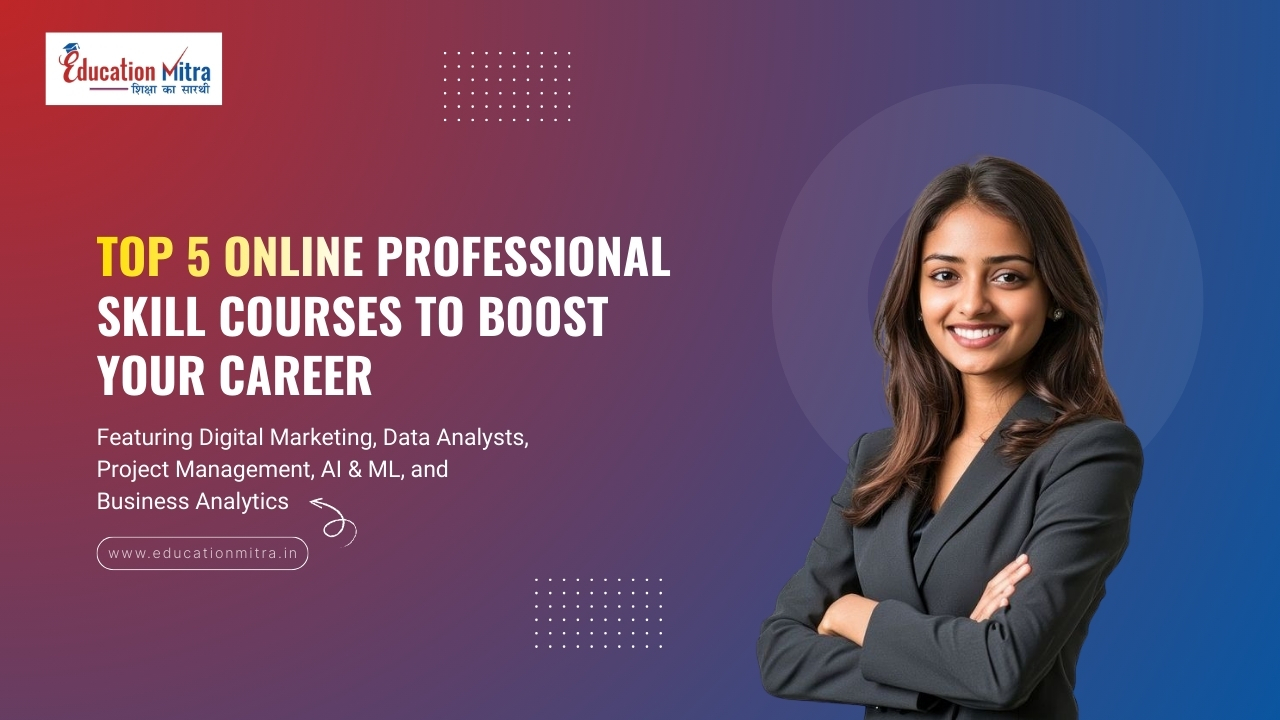 Let’s go through the top 5 online professional skills courses to boost your career. To know more and choose the best UGC-approved university, book afree career counseling sessionwith Education Mitra’s industry demands.