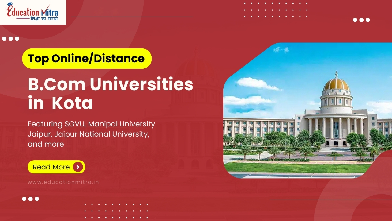 Explore top online & distance BCom universities in Kota, including SGVU, Manipal University Jaipur, and Jaipur National University, with fees & specia...