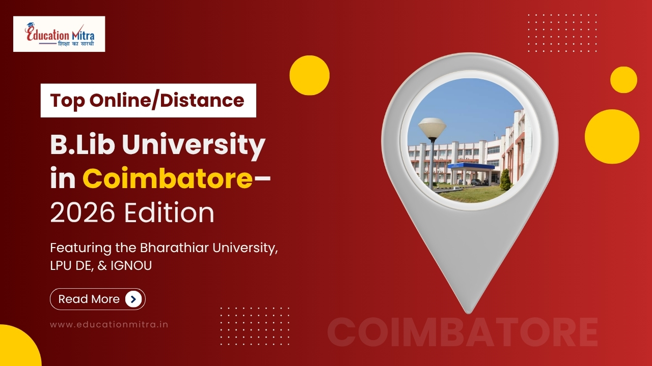 Explore top online & distance B.Lib universities for Coimbatore students, including UGC-approved institutions like Bharathiar University, LPU DE, IGNO...