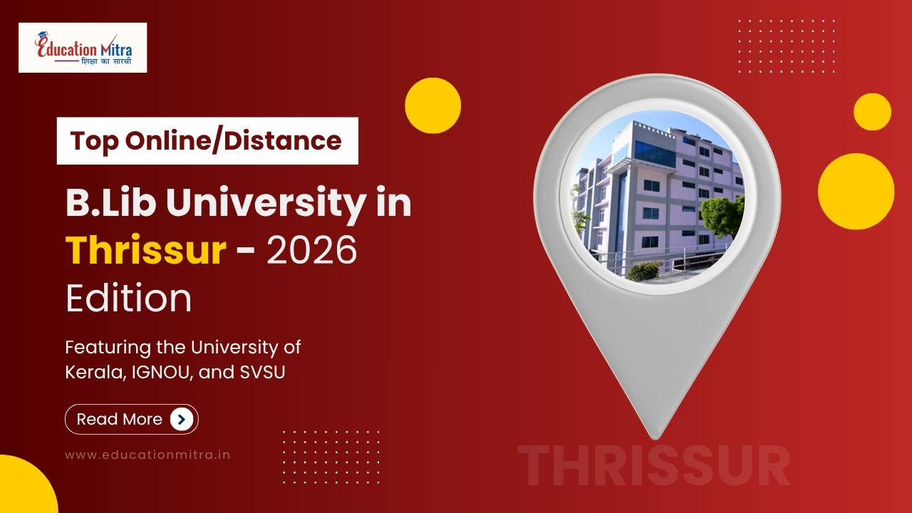 Explore top online & distance B.Lib universities for Thrissur students, including UGC-approved institutions like University of Kerala, IGNOU, SVSU, an...