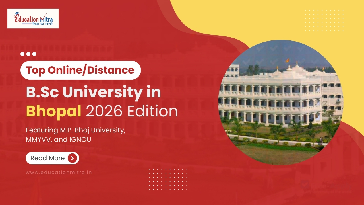 This blog curated some of the top online/distance B.Sc colleges and universities in Bhopal or nearby regions, offering a government-recognized degree through virtual learning modes. To compare and choose the best option, book a freepersonalized guidancewith Education Mitra.