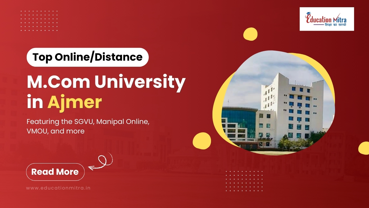Explore top online & distance MCom universities in Ajmer, including SGVU, Manipal Online, and VMOU, with fees & specializations. Enroll in top UGC-DEB...