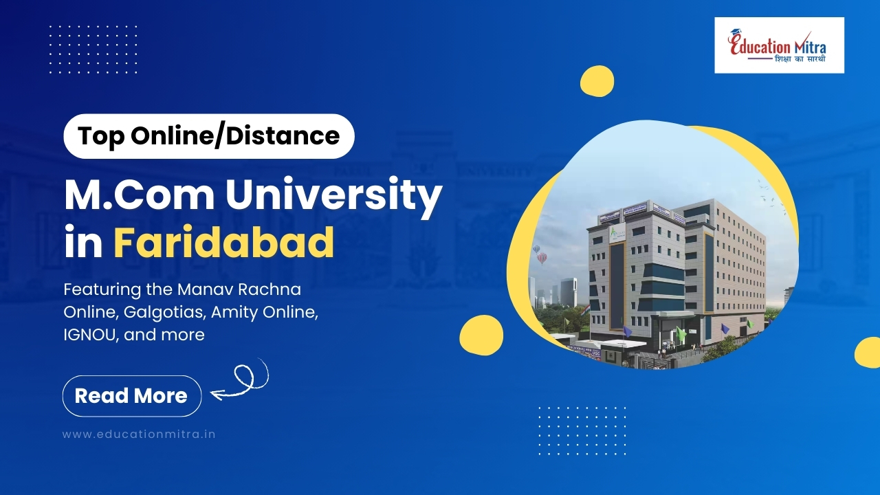 Explore top online & distance M.Com universities in Faridabad, including Manav Rachna Online, Galgotias, Amity Online, and IGNOU. Understand fees, eli...