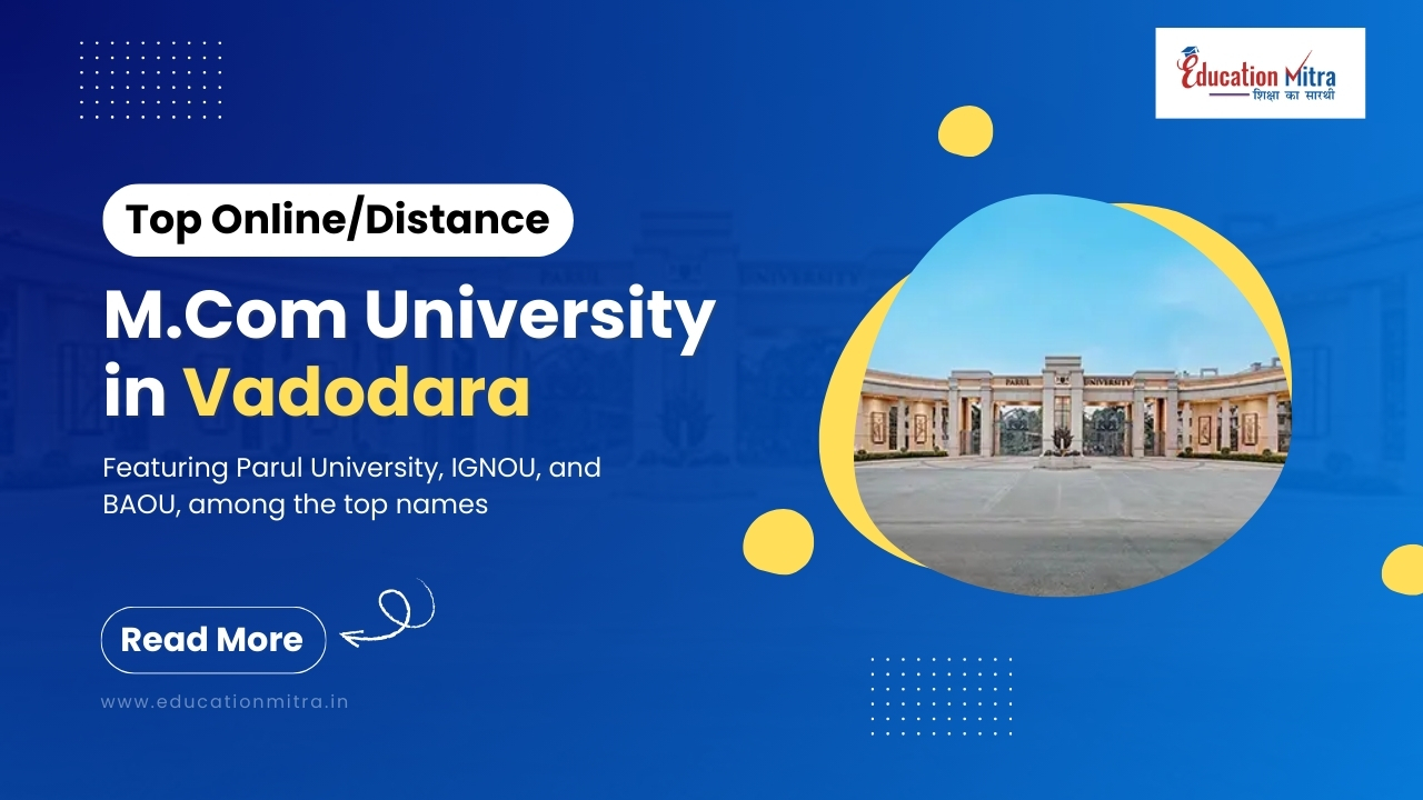 Explore top online & distance M.Com universities in Vadodara, including Vadodara University, Parul University, IGNOU, and BAOU. Understand fees, eligi...