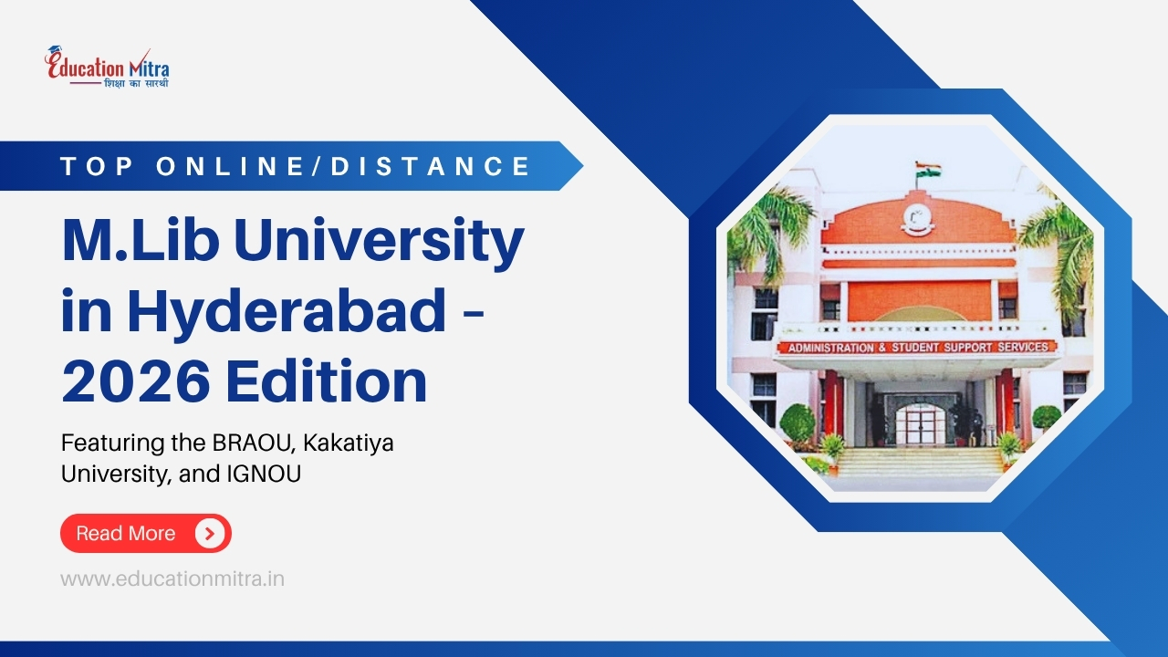Explore top online & distance M.Lib universities for Hyderabad students, including UGC-approved institutions like BRAOU, Kakatiya University, IGNOU, a...