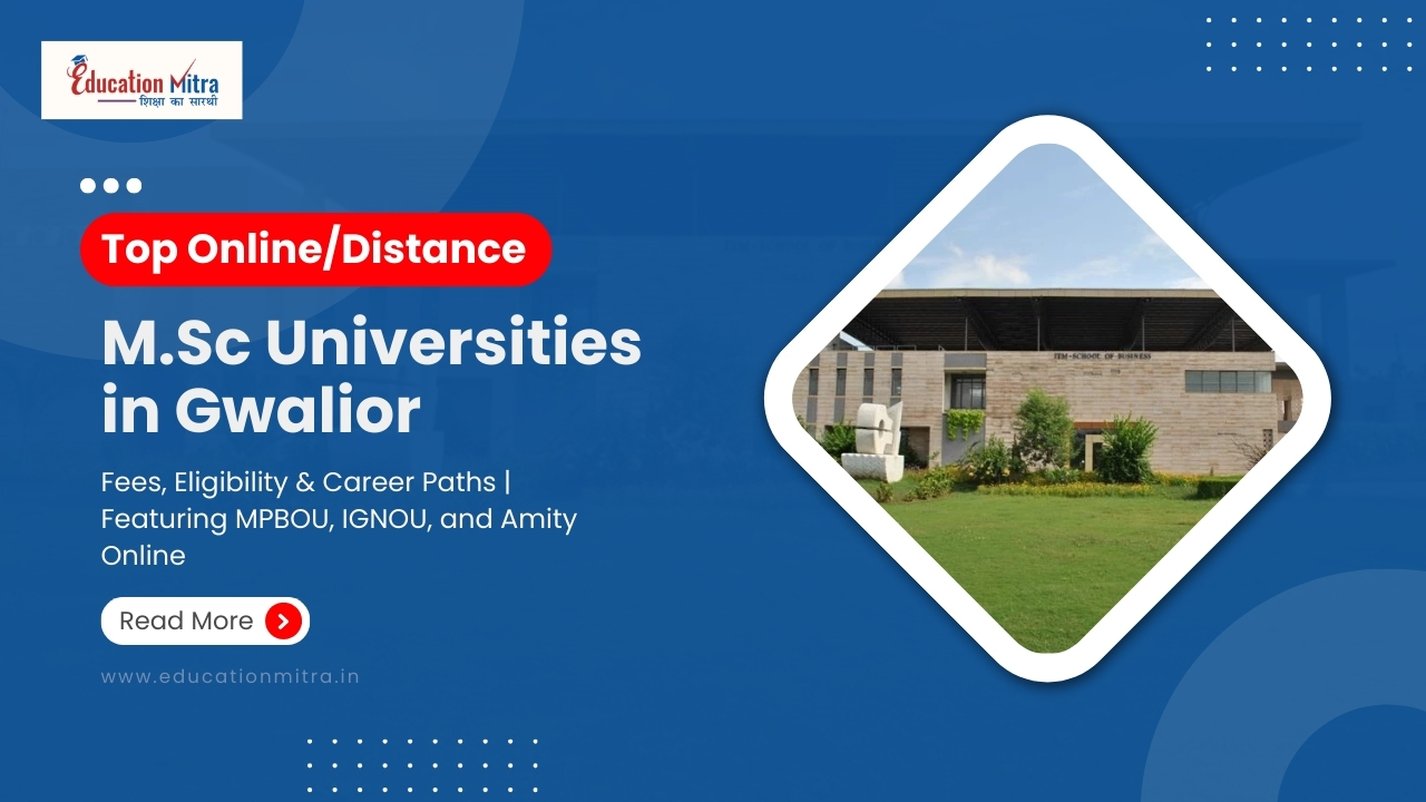 Explore top online & distance MSc universities in Gwalior, including MPBOU, IGNOU, and Amity Online, with fees & specializations. Enroll in top UGC-DE...